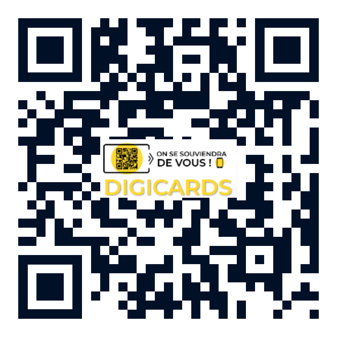 Utilisez ce qr code quand vous n’avez pas vos cartes de visites sur vous. Cliquez sur le lien de votre carte sur votre téléphone, allez en bas de la page et faites scanner ce qr code à votre entourage. Encouragez les ausssi à ajoutez à leurs écrans d’accueil de téléphone votre page !